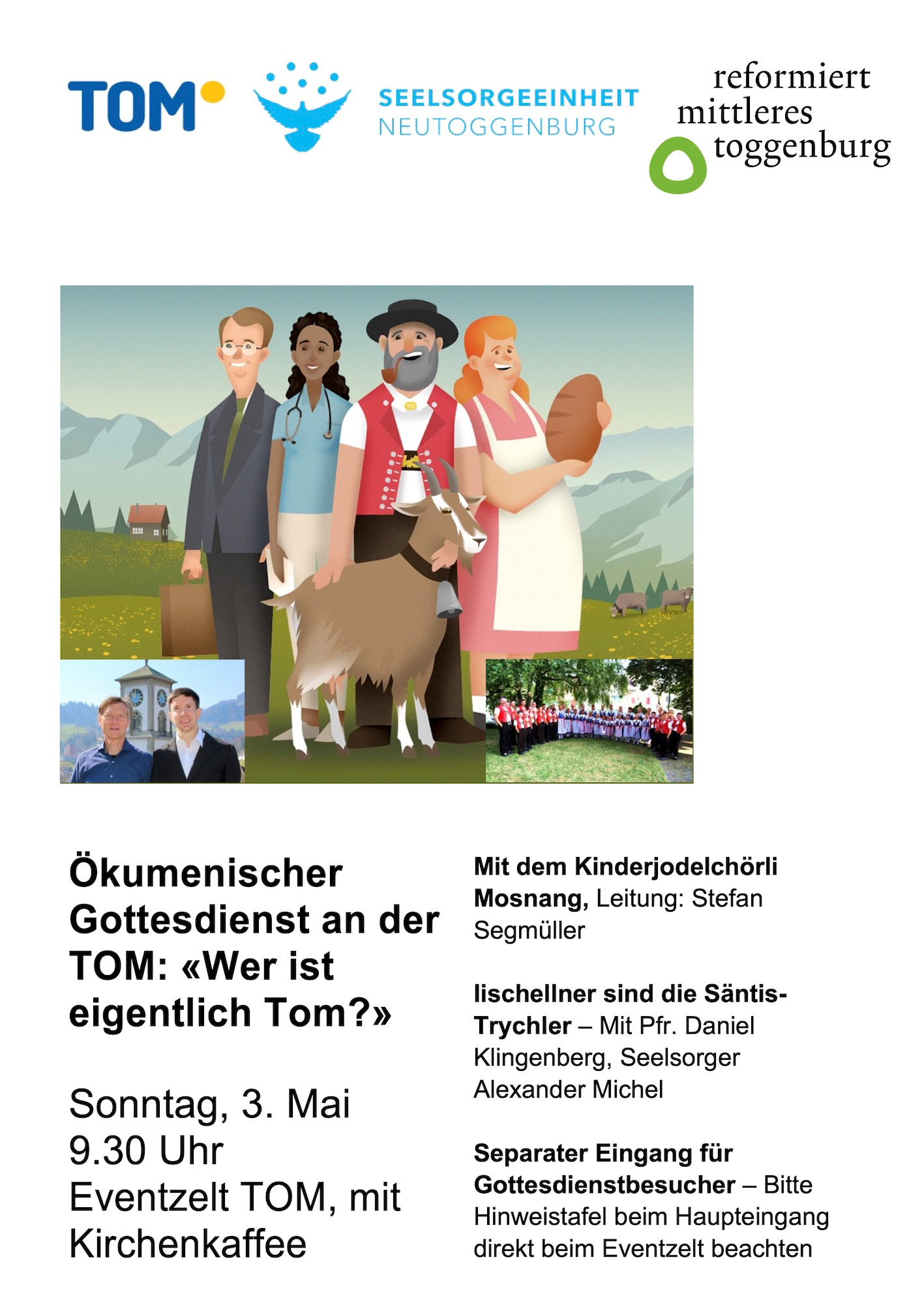 Inhaltlich fragen Pfarrer Daniel Klingenberg und Seelsorger Alexander Michel: «Wer ist eigentlich Tom?» Denn das Kürzel TOM für Toggenburger Messe erinnert an den Namen Tom – und dazu kann man schon biblische Spuren finden.